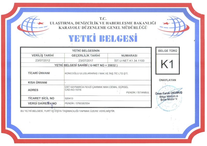 Uluslar Arası Nakliyat İşleri ve K1 Belgemiz ile Yurt içi Nakliye İşleri Yapmaktayız. Her türlü gemi taliye ve gemi blokları sevkiyatı yapmaktayız.